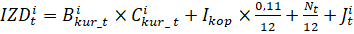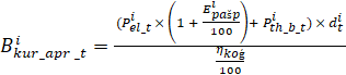 0,11 – koeficients, kas raksturo elektrostacijas ekspluatācijas izmaksu īpatsvaru veiktajās investīcijās, noteikts šā pielikuma 2. tabulā; 9.4. biomasas staciju izdevumi (euro) kalendāra gada t kalendāra mēnesī i