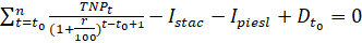 TNPt – tīrā naudas plūsma jeb naudas plūsma (euro), kas paliek komersanta rīcībā pēc visu ražošanas izdevumu segšanas, kalendāra gadā t; r – iekšējā peļņas norma (%); t – kalendāra gads, par kuru tiek veikts aprēķins; t0 – kalendāra gads, kad komersants ir sācis izmantot valsts atbalstu; n – kalendāra gads, kad komersanta tiesībām, kas piešķirtas saskaņā ar Elektroenerģijas tirgus likuma 29. pantu, beidzas izmantošanas laiks;