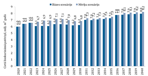 Mērķu scenārijs veidots, ievērojot bioloģiskās daudzveidības saglabāšanas mērķus. 3.1.6.1. Minerālmēslojuma pielietošana sausieņos un āreņos. Mēslojuma (amonija nitrāts, urīnviela vai slāpekļa un fosfora kompleksais mēslojums, kur fosfora īpatsvars ir līdz 50% no slāpekļa daudzuma) izkliedēšana uzlabo meža augšanu un produktivitāti, nodrošinot papildus CO2 piesaisti visās oglekļa krātuvēs. Augsnes ielabošanu var atkārtot ik pēc 7-10 gadiem, ja koku vainagu projektīvais segums nodrošina pietiekoši lielu augšanas telpu papildus pieauguma veidošanai. Minerālmēslojuma izmantošana mežā palielina N2O emisijas no augsnes, taču šīs emisijas ir daudz mazākas nekā piesaistes, kas rodas krājas papildus pieaugumā Īstenojot šo pasākumu maksimālā apjomā, papildus slāpekļa mēslojuma patēriņš nepārsniegs 5% no šobrīd lauksaimniecībā izmantojamā slāpekļa mēslojuma daudzuma. 3.1.6.2. Augsnes ielabošana kūdreņos, izmantojot koksnes pelnus. Koksnes pelnu izmantošana meža augšņu ielabošanā nodrošina meža produktivitātes palielināšanos, jo mežā palielinās kokiem un augiem nepieciešamo barības vielu daudzums (fosfors, magnijs, kālijs u. c. minerālvielas) un uzlabojas augsnes struktūra un pH līmenis. Koksnes pelnu izmantošanu augsnes ielabošanā var atkārtot pēc katras kopšanas cirtes vai biežāk, ja koku vainagu projektīvais segums nodrošina pietiekoši lielu augšanas telpu papildus pieauguma veidošanai. Koksnes pelnu izmantošanas apjomu Latvijā ierobežo tikai pelnu pieejamība, kas var ietekmēt šī pasākuma īstenošanas iespējas un sagaidāmo SEG emisiju samazinājumu. 3.1.6.3. Pārmitro meža biotopu atjaunošana lauksaimniecībā izmantojamās zemēs. Darbība paredz, ka 10 gadu laikā no 2024. g. lauksaimniecībā izmantojamās zemēs ar organiskajām augsnēm ~40 tūkst. ha platībā pārtrauc saimniecisko darbību, veic to apmežošanu, stādot bērzu vai melnalksni, un pēc koku vainagu sakļaušanās pakāpeniski slēdz meliorācijas sistēmas, veidojot dumbrājam raksturīgus apstākļus. Organisko augšņu apmežošana un hidroloģiskā režīma atjaunošana vispirms jāveic teritorijās ārpus lauku blokiem, kur nenotiek lauksaimnieciskā ražošana, un saimnieciski mazāk vērtīgu zālāju platībās, kur atjaunojies mitruma režīms (nolietojušās meliorācijas sistēmas) un kur meliorācijas sistēmas atjaunošana ir pārāk dārga vai tehniski un administratīvi sarežģīta. Efektu var samazināt dabiskie traucējumi, bet palielināt panākamo efektu līdz pat piecas reizes – mitruma režīma uzlabošana. Sekmīgai meža ekosistēmu izveidei var būt nepieciešamas pagaidu meliorācijas sistēmas, lai uzlabotu mitruma režīmu jaunaudzēs, kas vēl nespēj efektīvi regulēt mitruma režīmu. Vēl viens risinājums lokālai mitruma režīma uzlabošanai ir dziļvagu (līdz 30 cm dziļi grāvji) un ievalku tīkla izveidošana liekā ūdens novadīšanai no seklām ieplakām un mākslīgi radītu barjeru negatīvās ietekmes uz ūdens noteci novēršanai. Pagaidu meliorācijas sistēmu, ievalku un dziļvagu ierīkošana var būtiski uzlabot augšanas gaitu, taču šo risinājumu pielietošanā Latvijā pagaidām trūkst pieredzes. Meža ieaudzēšana nav plānota bioloģiski vērtīgos zālājos un īpaši aizsargājamās dabas teritorijās Veidojot lapu koku mežus ar dabiski mitru organisko augsni, tas vairākkārtīgi palielinātu bioloģiski vērtīgu biotopu – melnalkšņa staignāju – platību nākotnē. Tas ir pasākuma ietekme uz bioloģisko daudzveidību sagaidāma ilgtermiņā 3.1.6.4. Mērķtiecīga organisko augšņu apmežošana lauksaimniecībā izmantojamās zemēs. Veicot mērķtiecīgu organisko augšņu apmežošanu lauksaimniecībā izmantojamajās zemes ir iespējams panākt būtisku SEG emisiju samazinājumu. Pozitīvo efektu var samazināt dabiskie traucējumi. Emisiju samazināšanas efekts ir pastāvīgs un to nodrošina koksnes produkti un aizstāšanas efekts enerģētikas sektorā. Apmežošana nav plānota bioloģiski vērtīgos zālājos un īpaši aizsargājamās dabas teritorijās. Darbība arī ir ļoti svarīga, lai cietais biomasas kurināmais, kas ir ražots no Latvijā audzētas un iegūtas meža biomasas, būtu atzīstams par ilgtspējīgu kurināmo, t.i., lai šāds kurināmais atbilstu SEG emisiju ietaupījuma kritērijiem142, jo 2023. g. atbilstoši Direktīvas 2018/2001 VI pielikumam veiktais SEG emisiju ietaupījuma aprēķins neuzrāda atbilstību kritērijam, kas ir piemērojams no 01.01.2026. 3.1.6.5. Mērķtiecīga meža ieaudzēšana izstrādātajos kūdras laukos, tajā skaitā atjaunojot Latvijai raksturīgos pārmitro mežu biotopus. Mērķtiecīga meža ieaudzēšana izstrādāto kūdras laukos, veidojoties III un IV bonitātes purvaiņiem, piemēram, melnalkšņa, baltalkšņa un bērza audzēm, ko apsaimnieko atbilstoši ikdienišķajai praksei mežu ar organisko augsni apsaimniekošanā, veicina SEG emisiju samazinājumu, salīdzinājumā ar izstrādātajiem kūdras laukiem ar vāji attīstītu lakstaugu un krūmu veģetāciju. Efektu var samazināt dabiskie traucējumi, bet palielināt līdz pat piecas reizes – mitruma režīma uzlabošana un papildus pasākumu īstenošana augšanas apstākļu uzlabošanai. Pasākuma ietekme uz bioloģisko daudzveidību sagaidāma ilgtermiņā 3.1.6.6. Mazāk vērtīgo lauksaimniecībā izmantojamo zemju mērķtiecīga apmežošana. Veicinot mazvērtīgo lauksaimniecības zemju mērķtiecīgu apmežošanu, tiek samazinātas emisijas no lauksaimniecības zemēm un ar laiku radītas ievērojamas piesaistes apmežotajās teritorijās (zemes lietojuma maiņas izraisītā ietekme uz oglekļa bilanci katrā konkrētā gadījumā var būt atšķirīga). Tāpat tiek veicināta ilgtspējīga zemes apsaimniekošana un ilgtermiņā palielinās bioloģiski vērtību meža biotopu platība. Mē