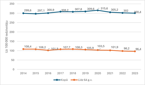 39 Latvijas reģionu veselības profils 2015-2022, SPKC 2023; https://www.spkc.gov.lv/lv/latvijas-regionu-un-pasvaldibu-veselibas-profili