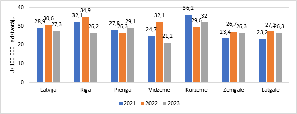 36 Latvijas reģionu veselības profils 2015-2022, SPKC 2023; https://www.spkc.gov.lv/lv/latvijas-regionu-un-pasvaldibu-veselibas-profili
