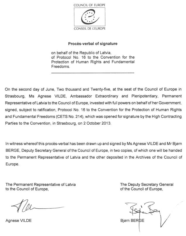 Nosaukums: Par Cilvēka tiesību un pamatbrīvību aizsardzības konvencijas 16. protokolu Statuss: