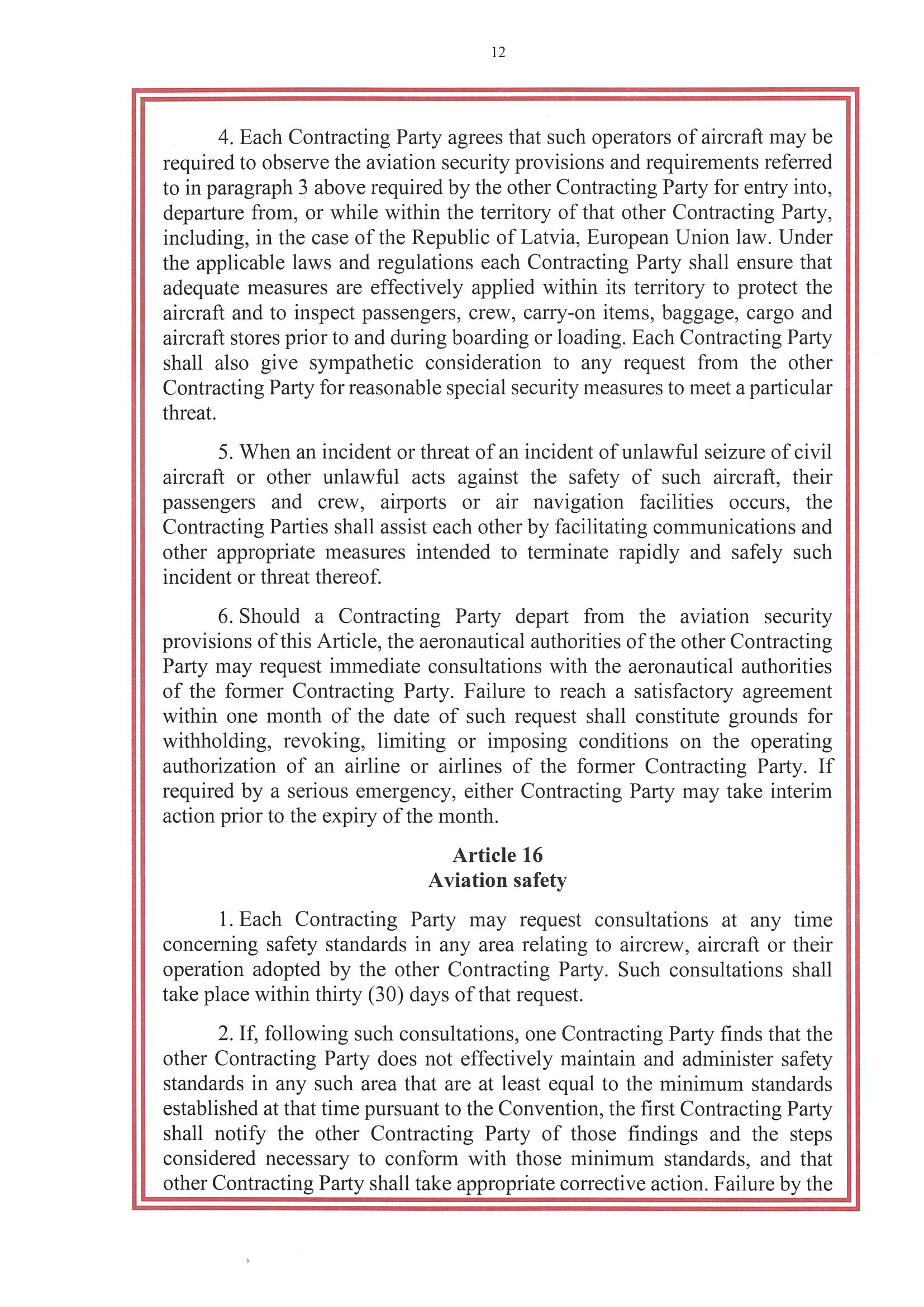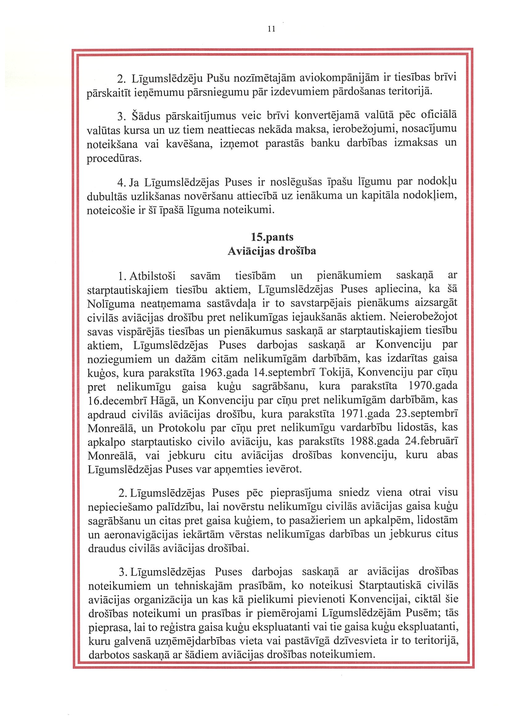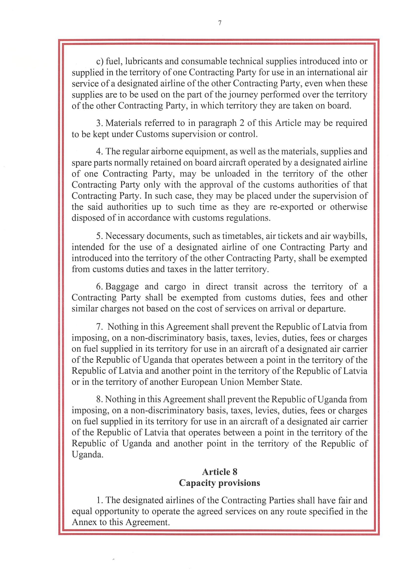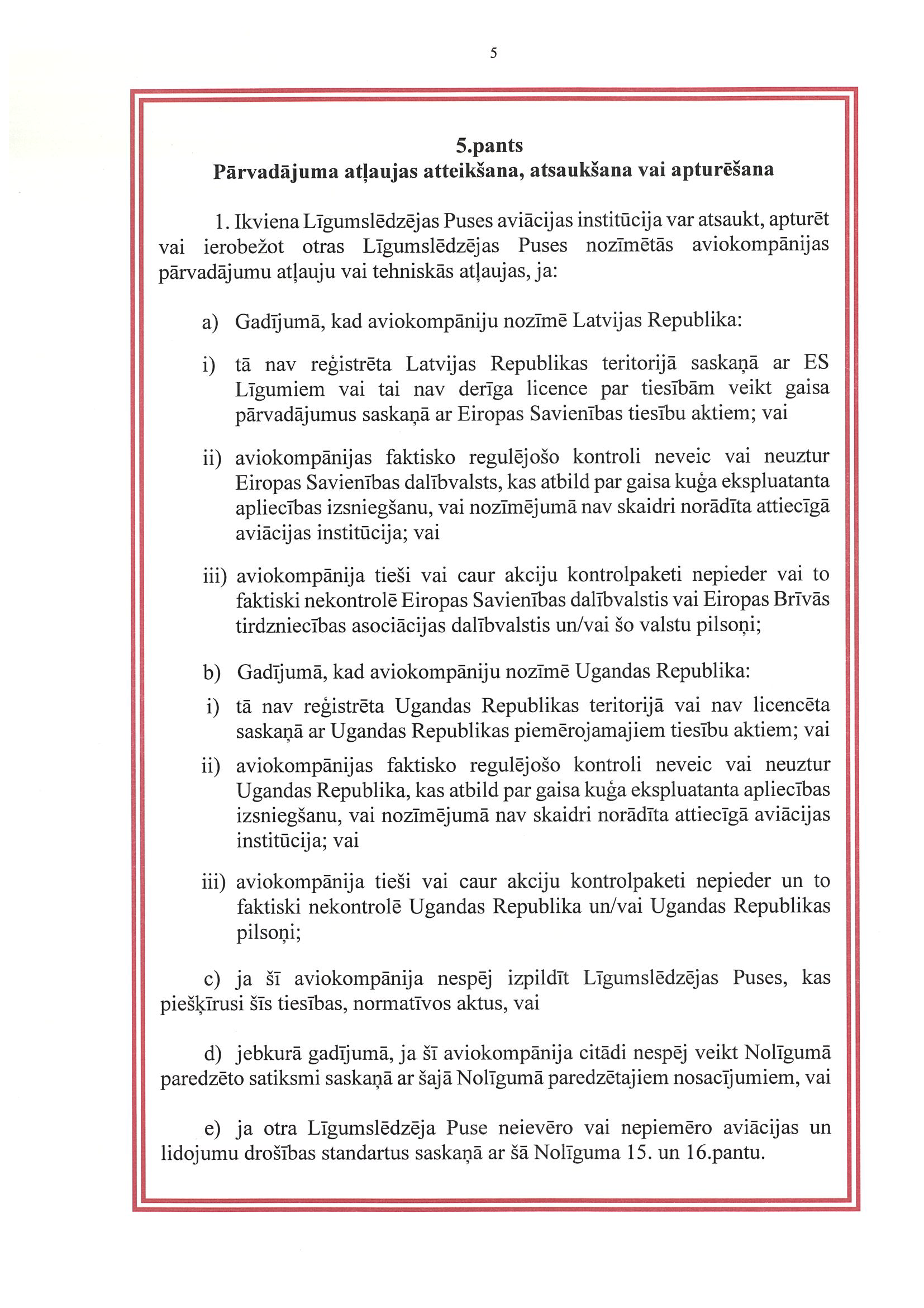 Nosaukums: Par Latvijas Republikas valdības un Ugandas Republikas valdības nolīgumu par gaisa satiksmi Statuss:
