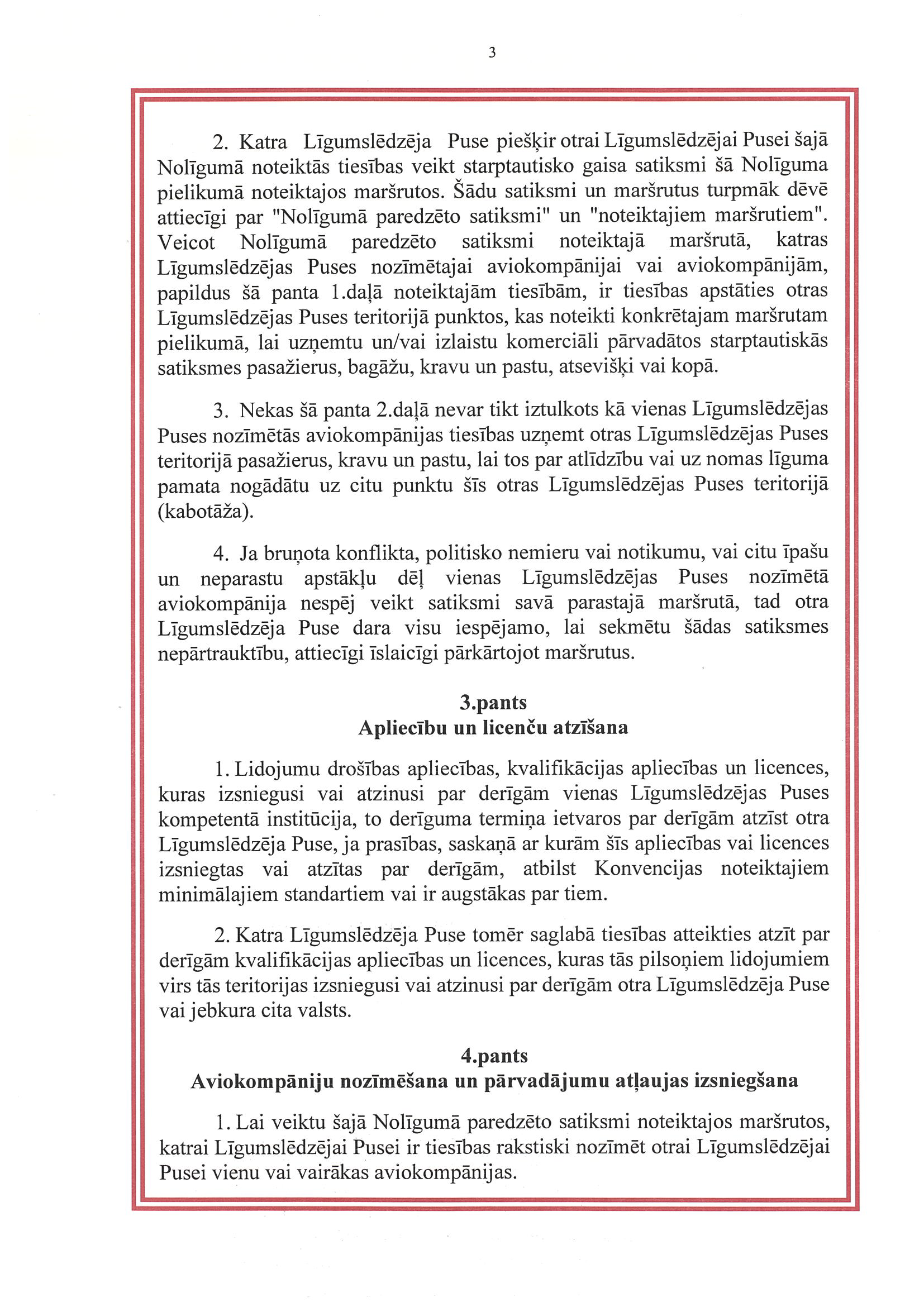 3. pants. Nolīgums stājas spēkā tā 23. pantā noteiktajā laikā un kārtībā, un Ārlietu ministrija par to paziņo oficiālajā izdevumā "Latvijas Vēstnesis". Līdz ar likumu izsludināms nolīgums latviešu un angļu valodā.