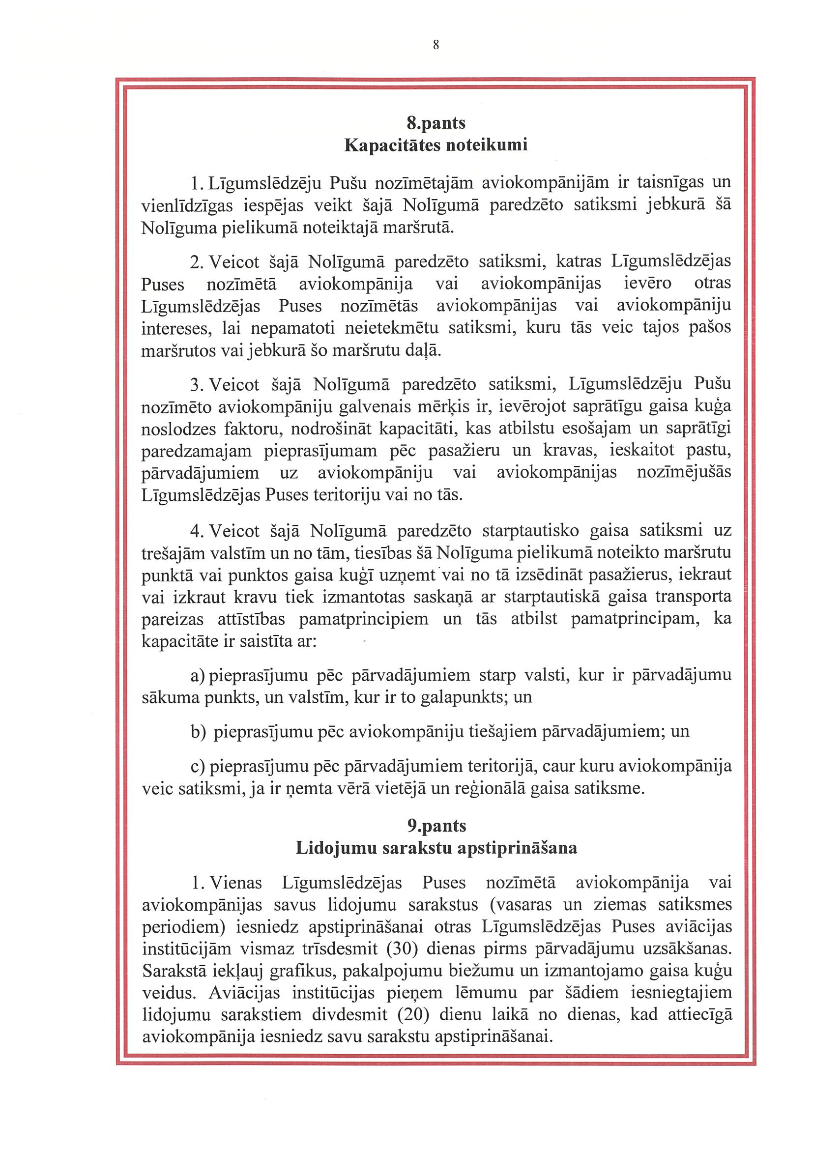 2. pants. Nolīgumā paredzēto saistību izpildi koordinē Satiksmes ministrija.