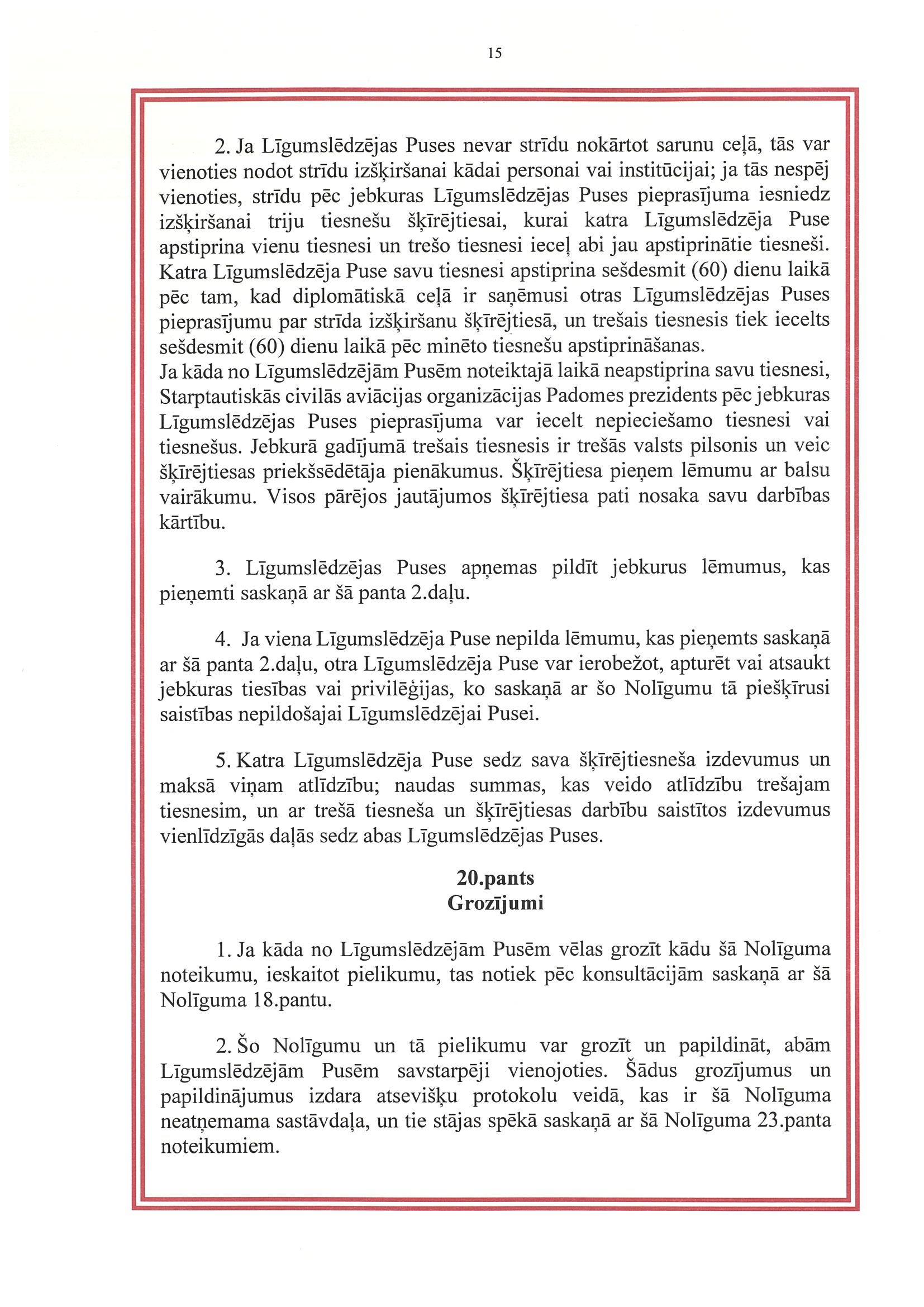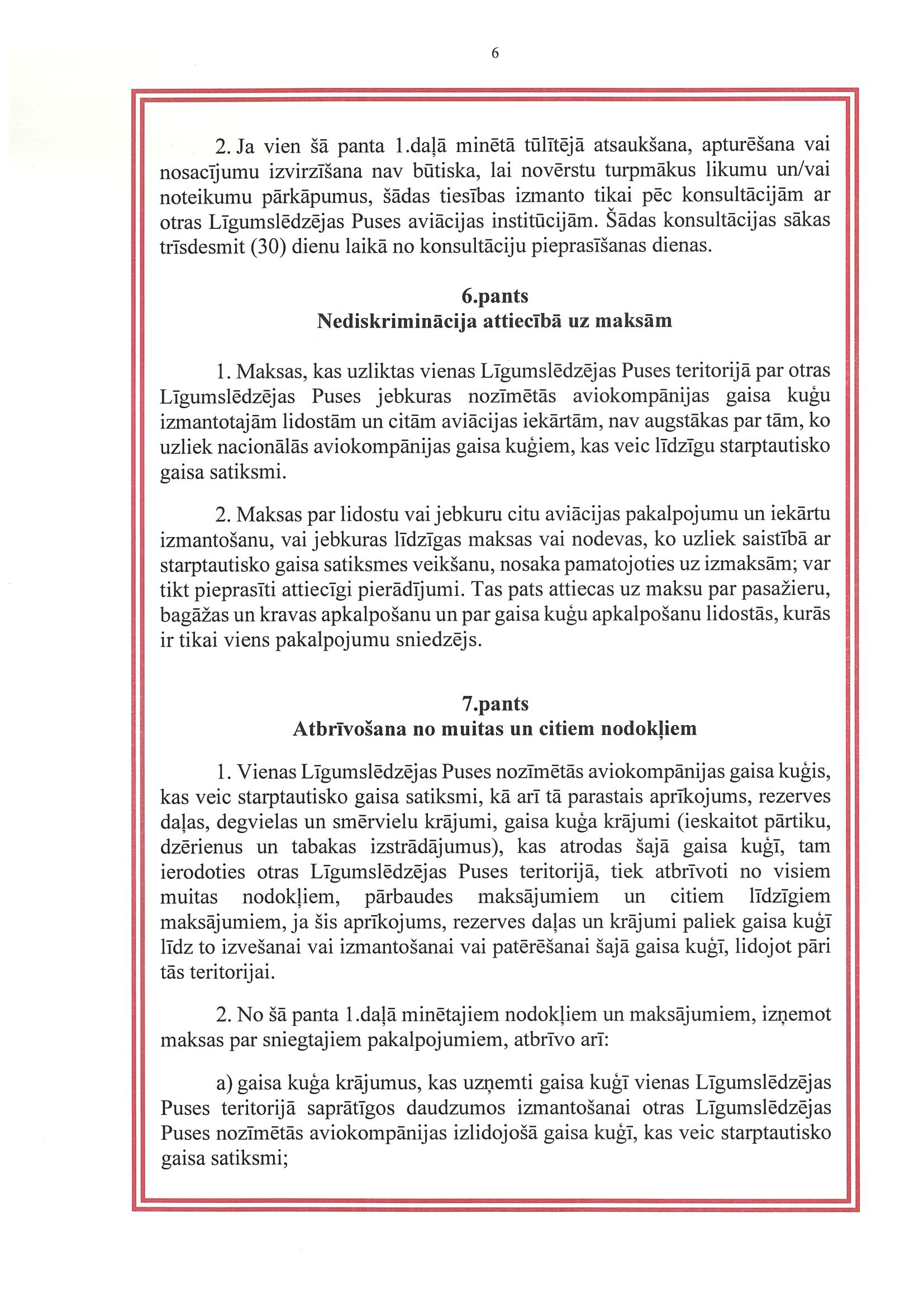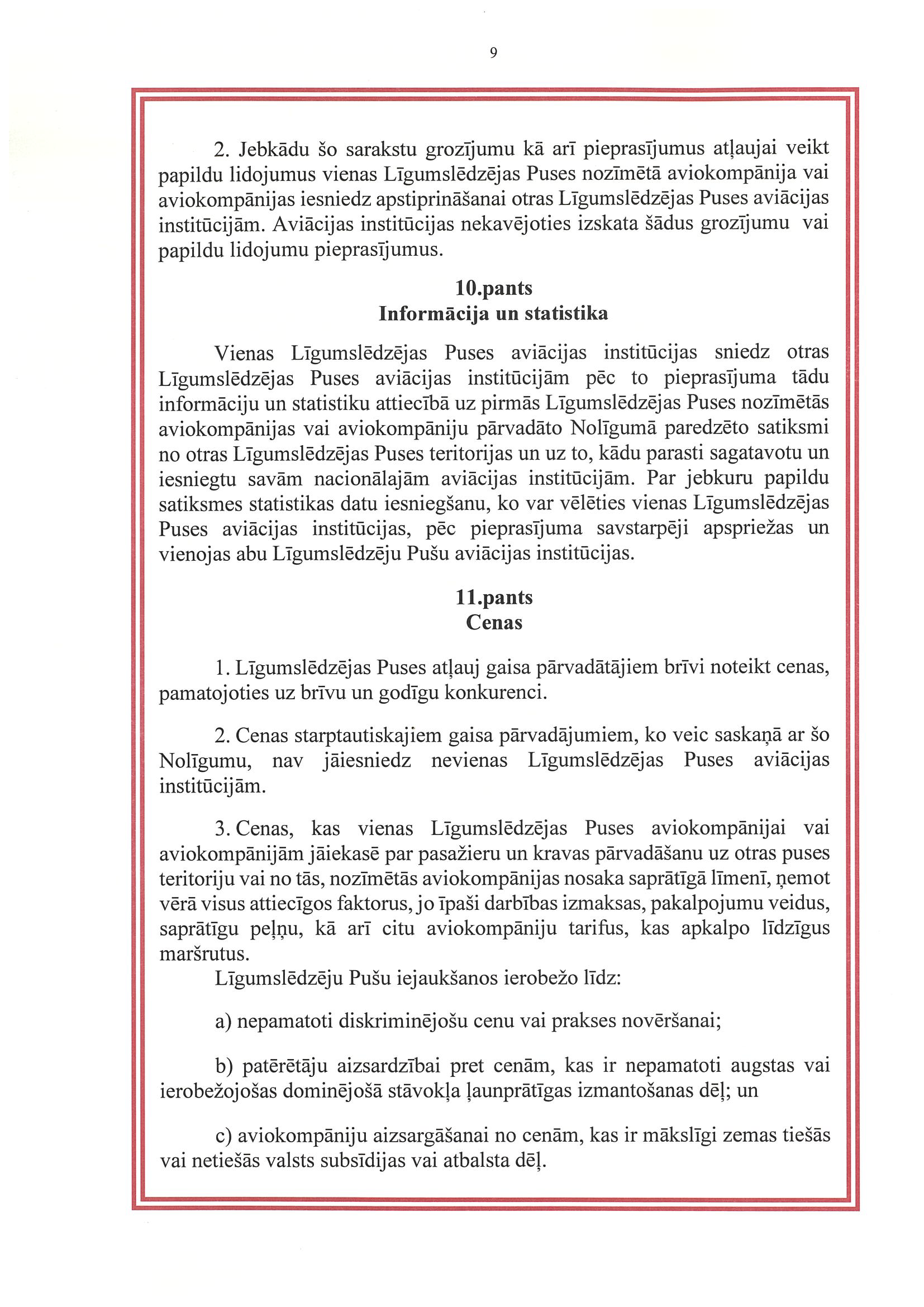 Nosaukums: LATVIJAS REPUBLIKAS VALDĪBAS UN UGANDAS REPUBLIKAS VALDĪBAS NOLĪGUMS PAR GAISA SATIKSMI Veids: starptautisks dokuments Pieņemts: 12.05.2025.Publicēts: Latvijas Vēstnesis, 205, 23.10.2025.