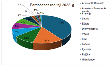 1. attēls. KUREKSS pārdošanas rādītāju sadalījums pa valstīm 2022. gadā14
