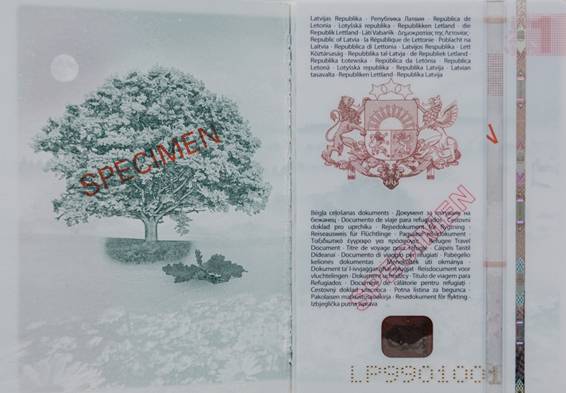 4. pielikums "5. pielikums Bēgļa ceļošanas dokumenta paraugsI. Pases vāks (1. vāks) (1. attēls) Krāsa: zila LATVIJAS REPUBLIKA REPUBLIC OF LATVIA Valsts simbolika: lielais valsts ģerbonis zelta krāsā CEĻOŠANAS DOKUMENTS TRAVEL DOCUMENT (Convention of 28 July 1951) Mikroshēmas simbols (saskaņā ar ICAO) II. Pases pirmā vāka iekšpuse (2. vāks) (2.a attēls) III. 1. lappuse (2.b attēls) Latvijas Republika Република Латвия República de Letonia Lotyšská republika Republikken Letland die Republik Lettland Läti Vabariik Δημοκρατία της Λετονίας Republic of Latvia la République de Lettonie Poblacht na Laitvia Repubblica di Lettonia Latvijos Respublika Lett Köztársaság Repubblika tal-Latvja de Republiek Letland Republika Łotewska República da Letónia Republica Letonă Lotyšská republika Republika Latvija Latvian tasavalta Republiken Lettland Republika Latvija Bēgļa ceļošanas dokuments Документ за пътуване на бежанец Documento de viaje para refugiados Cestovní doklad pro uprchíka Rejsedokument for flygtning Reiseausweis für Flüchtlinge Pagulase reisidokument Ταξιδιωτικό έγγραφο για πρόσφυγες Refugee Travel Document Titre de voyage pour réfugié Cáipéis Taistil Dídeanaí Documento di viaggio per rifugiati Pabėgėlio kelionės dokumentas Menekültek úti okmánya Dokument ta' l-ivvjaġġar għal-refuġjat Reisdocument voor vluchtelingen Dokument uchodźcy Título de viagem para Refugiados Document de călătorie pentru refugiaţi Cestovný doklad utecenca Potna listina za begunca Pakolaisen matkustusasiakirja Resedokument för flykting Izbjeglička putna isprava IV. 2. lappuse (3.a attēls) Datu lapa - informācijas lauku nosaukumi latviešu, angļu, franču valodā, indekss pie informācijas lauka - zināšanai un atbilstošā tulkojuma atrašanai BĒGĻA CEĻOŠANAS DOKUMENTS/REFUGEE TRAVEL DOCUMENT/TITRE DE VOYAGE POUR REFUGIE LATVIJA/LATVIA/LETTONIE Tips/Type/Type PR Valsts kods/Code of Issuing State/Code du pays LVA Dokumenta Nr./Document No./No du Titre Divi burti un septiņi cipari 1. Uzvārds/Surname/Nom 2. Vārds(-i)/Given name(s)/Prénom(s) 3. Pilsonība/Nationality/Nationalité 4. Augums/Height/Taille 5. Dzimums/Sex/Sexe 6. Dzimšanas datums/Date of birth/Date de naissance 7. Personas kods/Personal No./Code d'identité 8. Izdevējiestāde/Authority/Autorité 9. Dzimšanas vieta/Place of birth/Lieu de naissance 10. Izdošanas datums/Date of issue/Date de délivrance 11. Paraksts/Holder's signature/Signature du titulaire 12. Derīga līdz/Date of expiry/Date d'expiration V. 3. lappuse (3.b attēls) Šis ceļošanas dokuments ir derīgs visās valstīs, izņemot/This Travel Document is valid for all countries except/Ce titre de voyage est valable pour tous pays excepté: VALSTS NOSAUKUMS Dokuments, uz kura pamata izdots šis dokuments/Document on the basis of which the present document is issued/Document sur la base duquel ou desquels le présent titre est délivré: DOKUMENTA NOSAUKUMS, NUMURS UN DATUMS VI. 4. un 5. lappuse (4.a un 4.b attēls) Datu lapas informācijas lauku nosaukumi Eiropas Savienības valstu valodās BG 1. Фамилия 2. Имена 3. Гражданство 4. Ръст 5. Пол 6. Дата на раждане 7. Единен граждански номер 8. Издаден от 9. Място на раждане 10. Дата на издаване 11. Подпис на притежателя 12. Дата на валидност ES 1. Apellidos 2. Nombre(s) 3. Nacionalidad 4. Talla 5. Sexo 6. Fecha de nacimiento 7. Número de identificacón personal 8. Autoridad 9. Lugar de nacimiento 10. Fecha de expedición 11. Firma del titular 12. Fecha de caducidad CS 1. Přijmení 2. Jméno 3. Státní občanství 4. Výška 5. Pohlaví 6. Datum narození 7. Rodné číslo 8. Pas vydal 9. Místo narození 10. Datum vydání 11. Podpis držitele 12. Platnost do DA 1. Efternavn 2. Fornavne 3. Nationalitet 4. Højde 5. Køn 6. Fødselsdato 7. Personnummer 8. Myndighed 9. Fødested 10. Udstedelsesdato 11. Indehaverens underskrift 12. Gyldigt indtil DE 1. Name 2. Vornamen 3. Staatsangehörigkeit 4. Größe 5. Geschlecht 6. Geburtstag 7. Persönliche Identifizierungsnummer 8. Ausstellende Behörde 9. Geburtsort 10. Ausstellungsdatum 11. Unterschrift des Passinhabers 12. Gültig bis ET 1. Perekonnanimi 2. Eesnimed 3. Kodakondsus 4. Pikkus 5. Sugu 6. Sünniaeg 7. Isikukood 8. Väljaandja 9. Sünnikoht 10. Välja antud 11. Kasutaja allkiri 12. Kehtiv kuni EL 1. Επώνυμο 2. 'Ονομα 3. Iθayέvειa 4. Υψος 5. Φύλο 6. Ημερομηνία γέννησης 7. Προσωπικός apιθμός ταυτότητaς 8. Εκδούσα Αρχή 9. Τόπος γεννήσεως 10. Ημερομηνία έκδοσης 11. Υπογραφή κατόχου 12. Ημερομηνία λήξης GA 1. Sloinne 2. Réamhainm (neacha) 3. Náisiúntacht 4. Airde 5. Gnéas 6. Dáta breithe 7. Uimhir aitheantais phearsanta 8. Údarás eisiúna 9. Áit bhreithe 10. Dáta eisiúna 11. Síniú an tsealbhóra 12. As feidhm IT 1. Cognome 2. Nome 3. Cittadinanza 4. Statura 5. Sesso 6. Data di nascita 7. Codice fiscale 8. Autorità di rilascio 9. Luogo di nascita 10. Data di rilascio 11. Firma del titolare 12. Data di scadenza LT 1. Pavardé 2. Vardas(-ai) 3. Pilietybé 4. Ūgis 5. Lytis 6. Gimimo data 7. Asmens kodas 8. Išdavusi institucija 9. Gimimo vieta 10. Išdavimo data 11. Asmens parašas 12. Galioja iki HU 1. Családi név 2. Utónév(-ek) 3. Állampolgárság 4. Magasság 5. Nem 6. Születési idö 7. Személyi azonosító 8. Kiállító hatóság 9. Születési hely 10. Kiállítási dátum 11. Aláírás 12. Érvényességi idő MT 1. Kunjom 2. Ismijiet 3. Ċittadinanza 4. Tul 5. Sess 6. Data tat-twelid 7. Numru ta' identifikazzjoni personali 8. Uffiċċju min fejn inħareġ 9. Post tat-twelid 10. Data tal-ħruġ 11. Firma tad-detentur 12. Data meta jisk