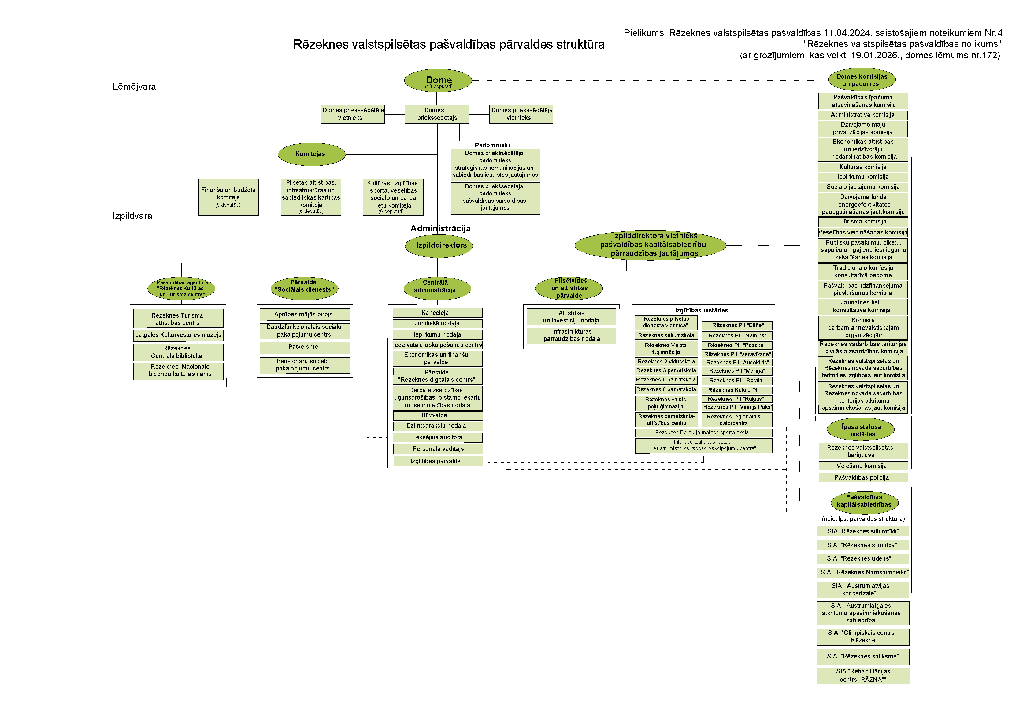 4) ņemot vērā Pašvaldībā jau veiktos organizatoriska rakstura pasākumus, tiek precizēts Nolikuma pielikums "Rēzeknes valstspilsētas pašvaldības pārvaldes struktūra".