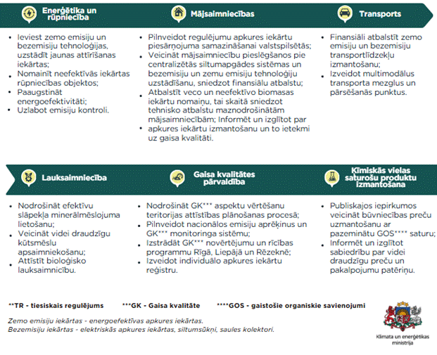 Politikas plānošanas dokuments Nosaukums: Smalko daļiņu, amonjaka, slāpekļa oksīdu, gaistošo organisko savienojumu un sēra dioksīda emisiju .. Veids: plānsPolitikas joma: Vides aizsardzība Atbildīgā iestāde: Klimata un enerģētikas ministrija