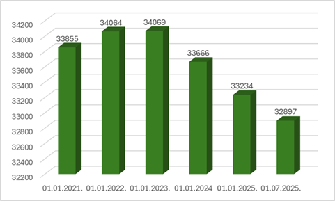 1. attēls Iedzīvotāju skaits Jelgavas novada pagastos uz 01.07.2025.