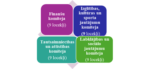Lai nodrošinātu savu darbību, dome no pašvaldības deputātiem izveidojusi 4 pastāvīgās komitejas: