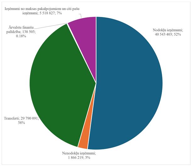 2.1. kārtējā gada ieņēmumi - 77 857 043 euro;