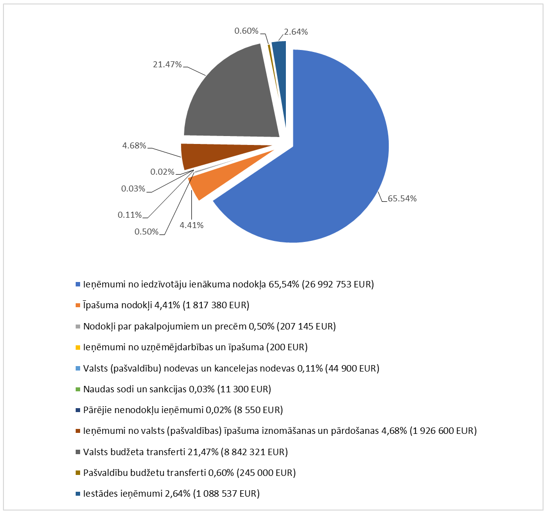 Budžeta iestāžu ieņēmumus 1 088 537 euro jeb 2,64 % no kopējiem pamatbudžeta ieņēmumiem veido vecāku maksas par bērnu ēdināšanu pirmsskolas izglītības iestādēs, ieņēmumi par telpu, zemes nomu, mūzikas instrumentu nomu, interešu izglītības maksām, ieņēmumi par personu uzturēšanos sociālās aprūpes iestādē, no peldbaseina un slidotavas sniegtajiem maksas pakalpojumiem un citi ieņēmumi.