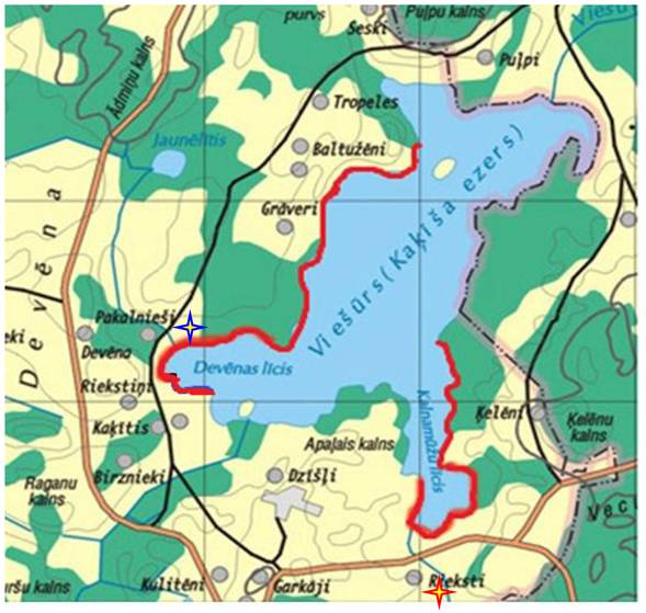 - piekrastes posmi, kuros atļauta makšķerēšana no krasta, kā arī iebrienot ūdenī. (Tālr. 28656198).