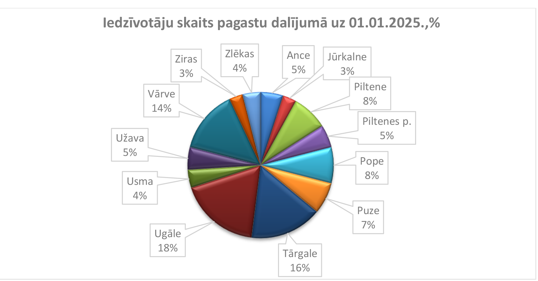 2. attēls. Iedzīvotāju skaits Ventspils novadā pa pagastiem uz 01.01.2025 (PMPL)
