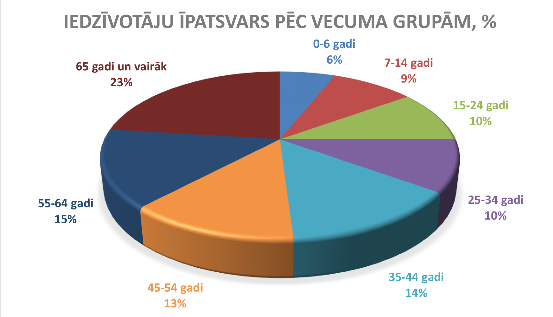 3. attēlā var aplūkot iedzīvotāju īpatsvaru Ventspils novadā pa vecuma grupām.