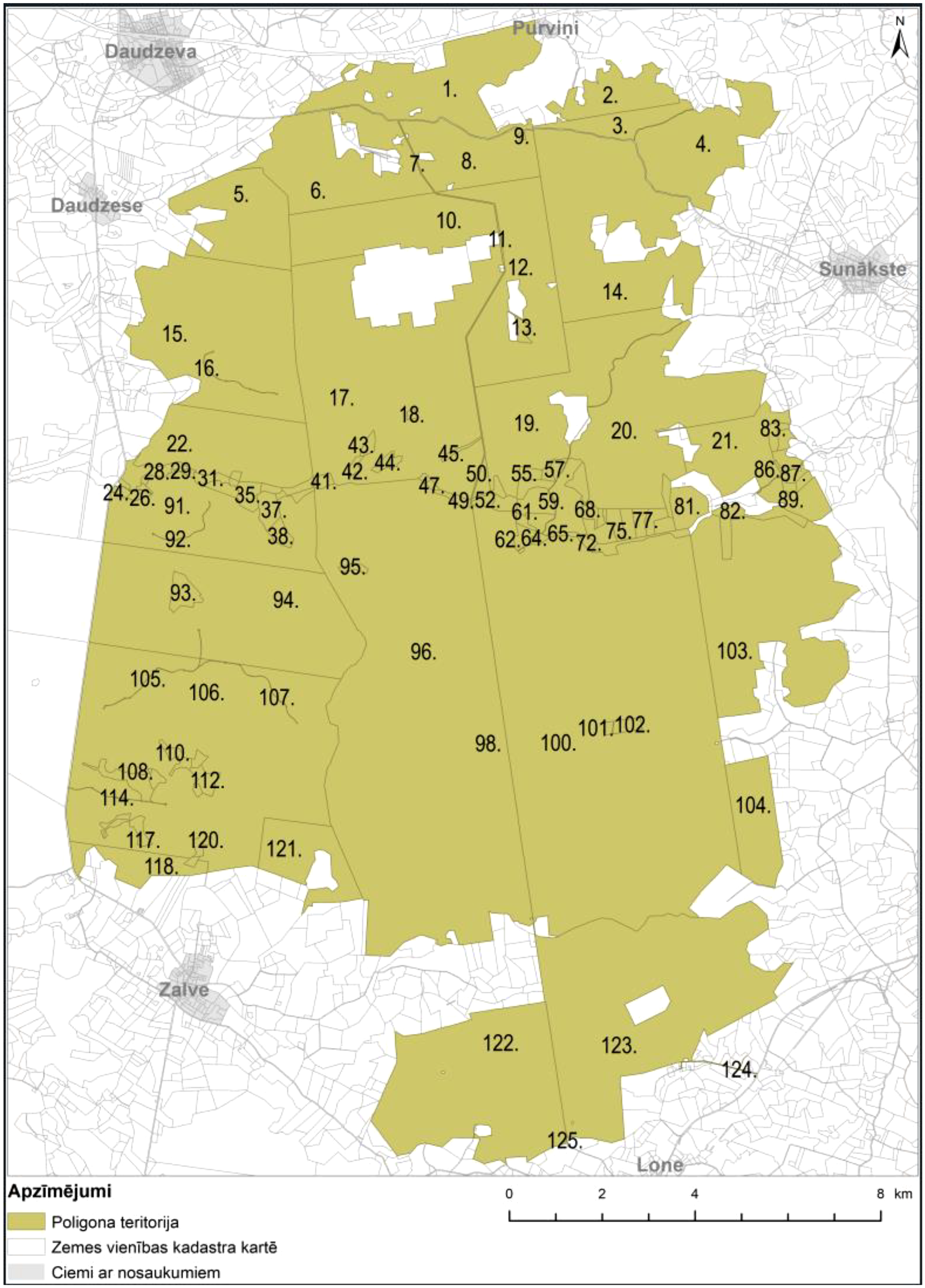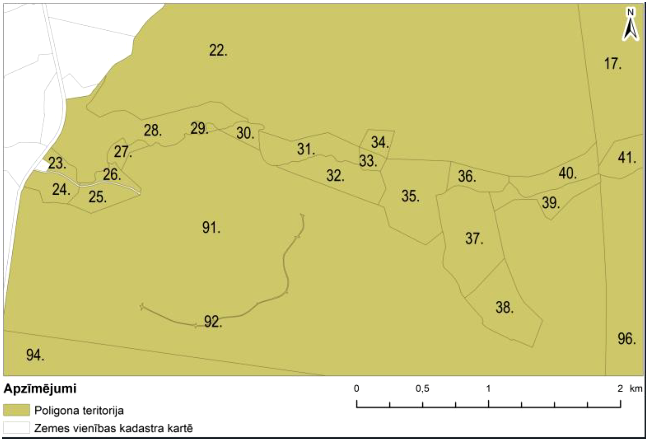 Militārā poligona "Sēlija" robeža un tā teritorijā ietilpstošie nekustamie īpašumi