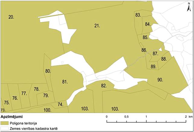 no 2. atzīmes uz 3. atzīmi ziemeļu virzienā