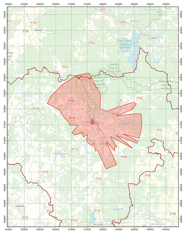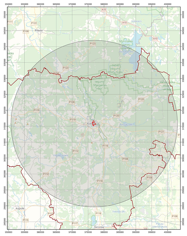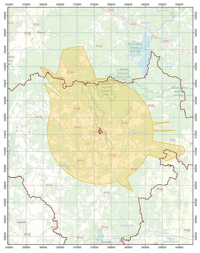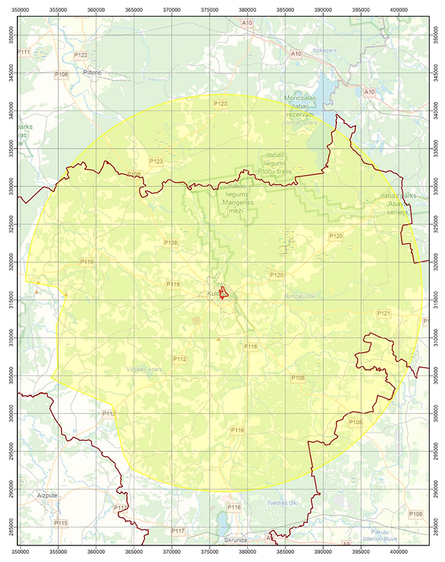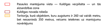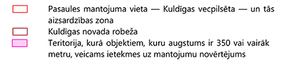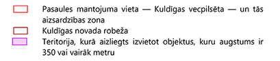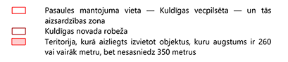 aizsardzības likuma Teritorija, kurā objektiem, kuru augstums ir 350 vai vairāk metru, un citiem objektiem, kuri var ietekmēt Kuldīgas vecpilsētas īpašas nozīmes universālu vērtību, veicams sākotnējais ietekmes uz mantojumu novērtējums