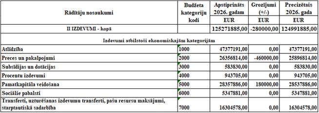 Paskaidrojuma rakstsGrozījumi Ropažu novada pašvaldības domes 2026. gada 28. janvāra saistošajos noteikumos "Par Ropažu novada pašvaldības budžetu 2026. gadam" veikti pamatojoties uz veiktajām izmaiņām Ropažu novada Attīstības programmas 2022.-2028. gadam Investīciju plānā 2026.-2028. gadam un ir nepieciešami, lai veiktu izmaiņas budžeta un izdevumu un finansēšanas sadaļās. Grozījumi Ropažu novada pašvaldības budžetā: Izdevumi Izdevumi samazināti par EUR 280 000 Ropažu novada