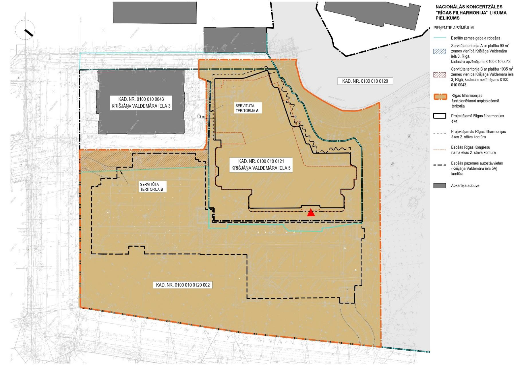 Nacionālās koncertzāles "Rīgas filharmonija" likuma pielikums Koncertzālei funkcionāli nepieciešamā teritorija un servitūta tiesības izlietošanai nepieciešamās nekustamā īpašuma reālās daļas |