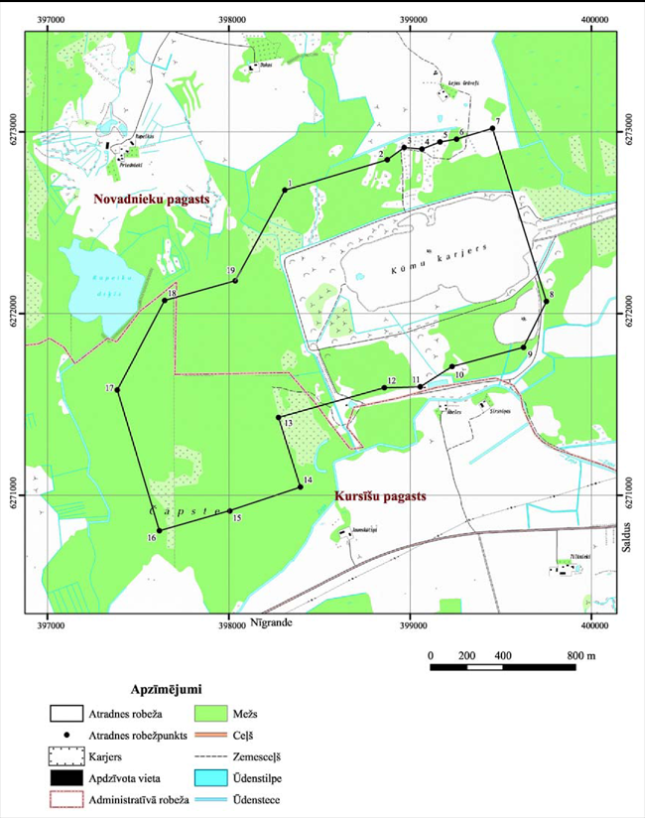 I. Valsts nozīmes dolomīta atradnes "Pērtnieki" shēma