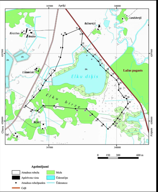 II. Valsts nozīmes māla atradnes "Apriķi" robežpunktu koordinātas Nr. p.k. | Robežpunkts | X koordināta | Y koordināta | 1 | 2 | 3 | 4 | 1. | 1 | 296352,40 | 346776,99 | 2. | 2 | 296450,04 | 346868,93 | 3. | 3 | 296524,98 | 346911,25 | 4. | 4 | 296600,56 | 346958,33 | 5. | 5 | 296676,33 | 347029,38 | 6. | 6 | 296745,78 | 347087,50 | 7. | 7 | 296943,07 | 347172,63 | 8. | 8 | 297086,54 | 347203,79 | 9. | 9 | 297266,85 | 347213,64 | 10. | 10 | 297284,39 | 347259,18 | 11. | 11 | 297364,27 | 347449,34 | 12. | 12 | 297290,30 | 347499,68 | 13. | 13 | 297129,17 | 347480,75 | 14. | 14 | 297039,44 | 347572,25 | 15. | 15 | 296960,93 | 347654,85 | 16. | 16 | 296883,66 | 347734,50 | 17. | 17 | 296826,76 | 347759,06 | 18. | 18 | 296745,67 | 347844,05 | 19. | 19 | 296673,94 | 347922,52 | 20. | 20 | 296605,38 | 348000,91 | 21. | 21 | 296541,17 | 348034,78 | 22. | 22 | 296457,25 | 348029,68 | 23. | 23 | 296348,98 | 348109,02 | 24. | 24 | 296331,27 | 348148,36 | 25. | 25 | 296256,64 | 348168,41 | 26. | 26 | 296205,33 | 348135,84 | 27. | 27 | 296128,32 | 348077,49 | 28. | 28 | 296038,01 | 348016,65 | 29. | 29 | 295987,05 | 347974,44 | 30. | 30 | 295957,33 | 347950,69 | 31. | 31 | 295882,16 | 347873,29 | 32. | 32 | 295950,90 | 347803,66 | 33. | 33 | 296027,21 | 347723,15 | 34. | 34 | 296100,07 | 347640,57 | 35. | 35 | 296179,92 | 347556,58 | 36. | 36 | 296182,43 | 347393,97 | 37. | 37 | 296223,92 | 347079,40 | 38. | 38 | 296228,55 | 346917,81 | 39. | 39 | 296151,63 | 346835,69 | 40. | 40 | 296164,62 | 346756,48 | 41. | 41 | 296223,02 | 346659,67 |