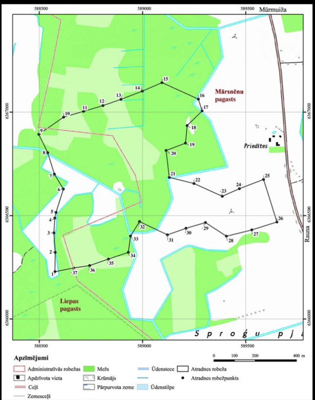 II. Valsts nozīmes kvarca smilts atradnes "Cīruļi" robežpunktu koordinātas Nr. p.k. | Robežpunkts | X koordināta | Y koordināta | 1 | 2 | 3 | 4 | 1. | 1 | 366228,70 | 588575,56 | 2. | 2 | 366322,04 | 588576,80 | 3. | 3 | 366416,62 | 588570,58 | 4. | 4 | 366488,18 | 588574,93 | 5. | 5 | 366515,56 | 588581,16 | 6. | 6 | 366627,57 | 588616,63 | 7. | 7 | 366699,75 | 588573,07 | 8. | 8 | 366803,67 | 588540,71 | 9. | 9 | 366892,66 | 588497,77 | 10. | 10 | 366975,90 | 588617,62 | 11. | 11 | 367003,68 | 588714,20 | 12. | 12 | 367031,47 | 588808,12 | 13. | 13 | 367061,89 | 588895,44 | 14. | 14 | 367101,58 | 588998,62 | 15. | 15 | 367142,59 | 589093,87 | 16. | 16 | 367063,16 | 589270,01 | 17. | 17 | 367005,91 | 589288,05 | 18. | 18 | 366934,89 | 589215,58 | 19. | 19 | 366850,23 | 589207,65 | 20. | 20 | 366814,51 | 589113,72 | 21. | 21 | 366684,20 | 589129,37 | 22. | 22 | 366654,43 | 589248,66 | 23. | 23 | 366592,72 | 589385,75 | 24. | 24 | 366629,44 | 589469,13 | 25. | 25 | 366674,28 | 589586,00 | 26. | 26 | 366469,23 | 589650,82 | 27. | 27 | 366430,86 | 589529,12 | 28. | 28 | 366400,43 | 589406,08 | 29. | 29 | 366466,58 | 589304,22 | 30. | 30 | 366438,80 | 589210,29 | 31. | 31 | 366407,05 | 589120,33 | 32. | 32 | 366471,38 | 588985,01 | 33. | 33 | 366401,07 | 588941,45 | 34. | 34 | 366322,04 | 588930,87 | 35. | 35 | 366289,68 | 588834,42 | 36. | 36 | 366257,94 | 588743,57 | 37. | 37 | 366246,74 | 588666,41 |
