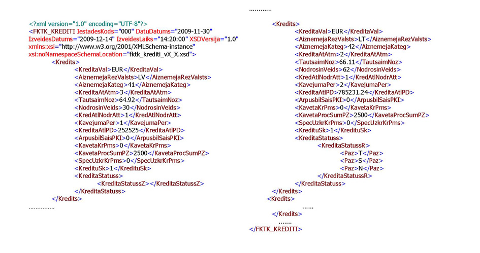 fktk_krediti_vXXX.xsd, kur XXX vietā jānorāda izmantotās XSD