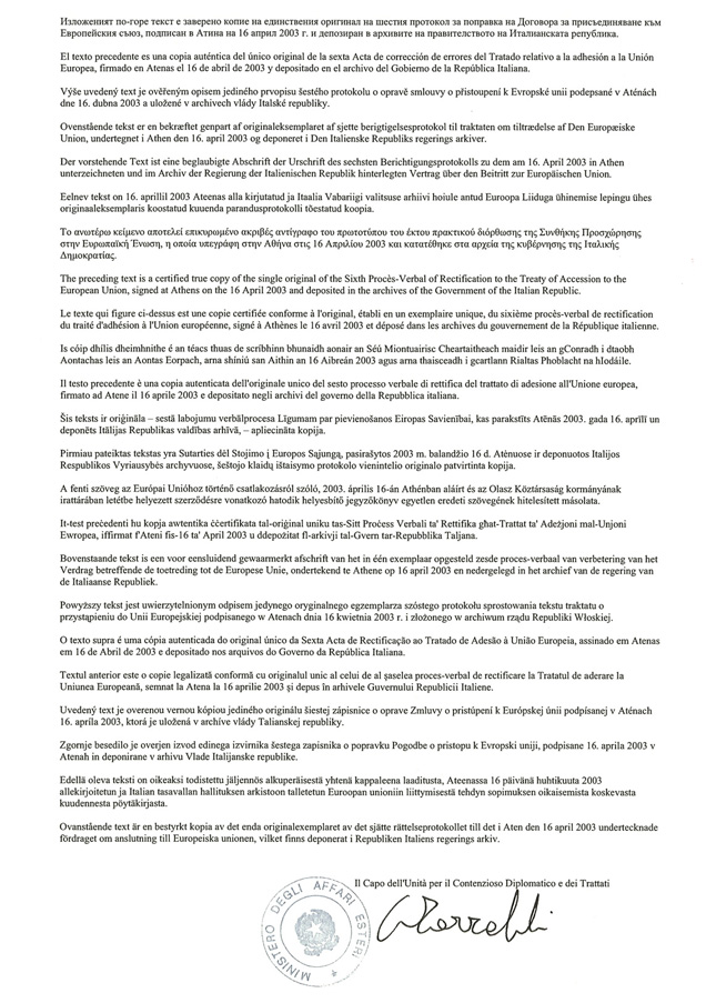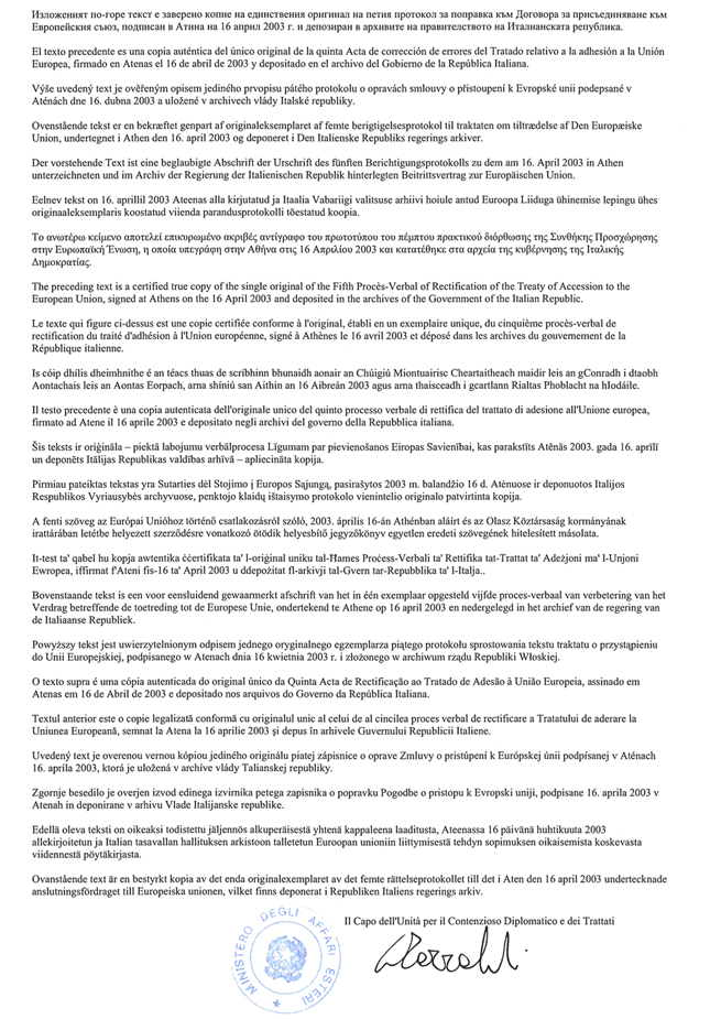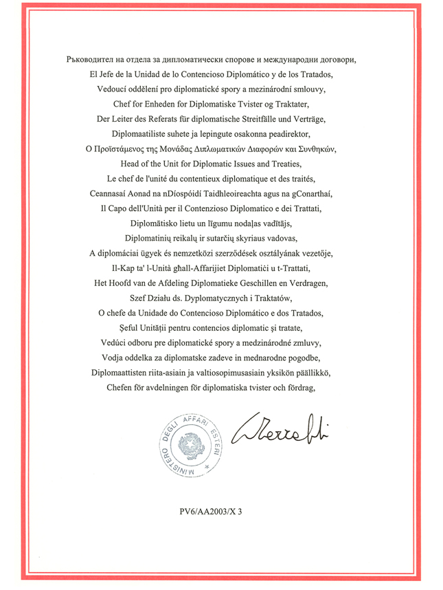 2007. gada 13. decembrī un deponēts Itālijas Republikas