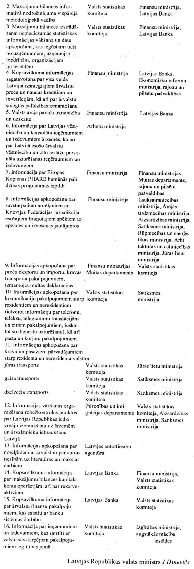 iestādēm maksājumu bilances sastādīšanai nepieciešamo atbilstošas