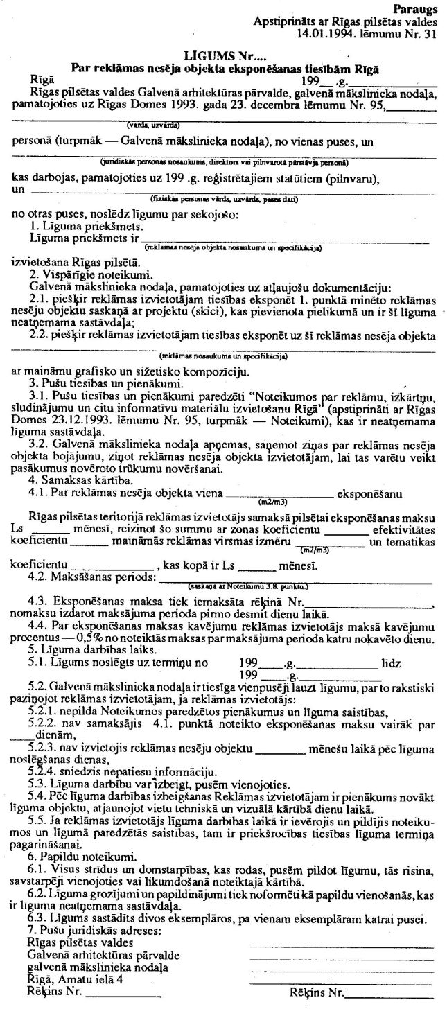 Rīgas pilsētas valdes 14.01.1994. lēmumu Nr.31