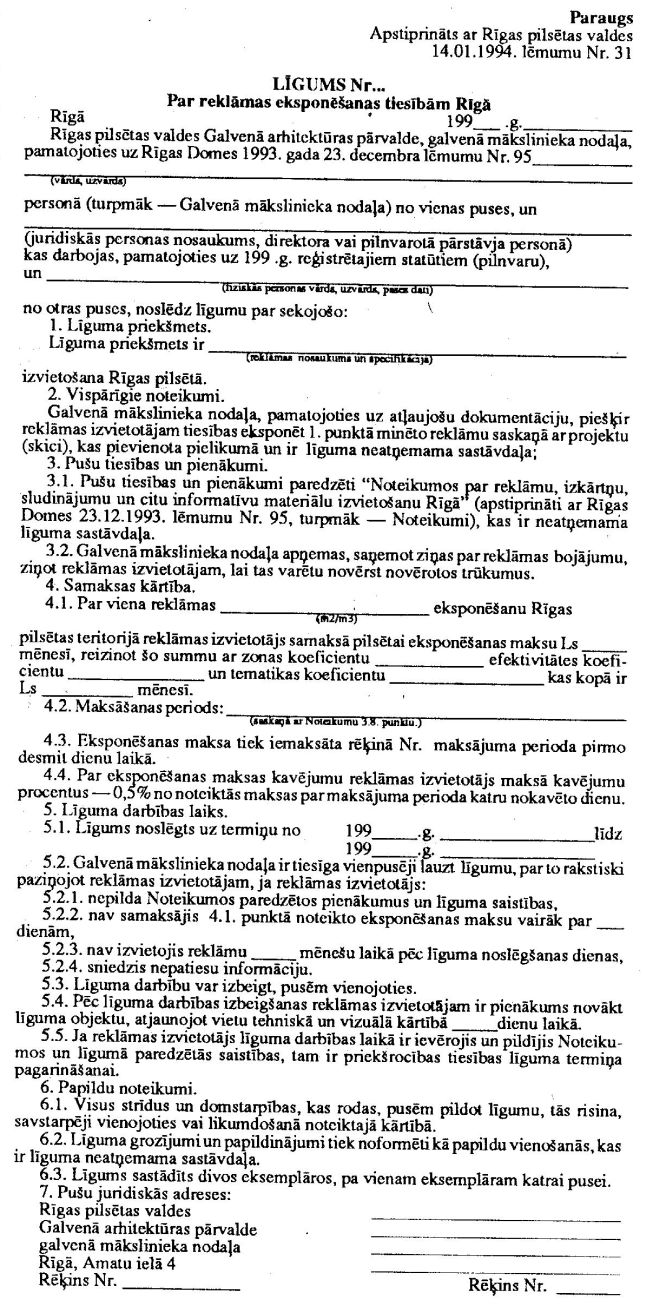 izvietošanu Rīgā" un Latvijas Republikas likumdošanas