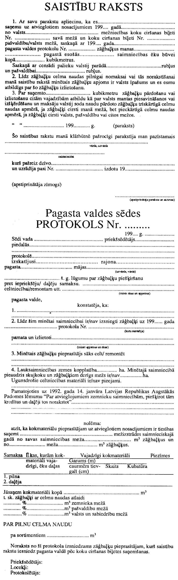 pagasta valde dod atļauju saņemt koku ciršanas biļeti, reģistrē