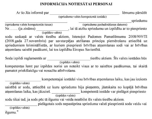 izpildīšanas nodrošināšanai - veidlapu notiesātās personas