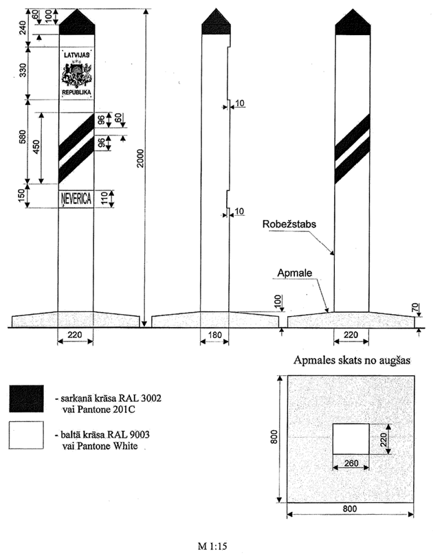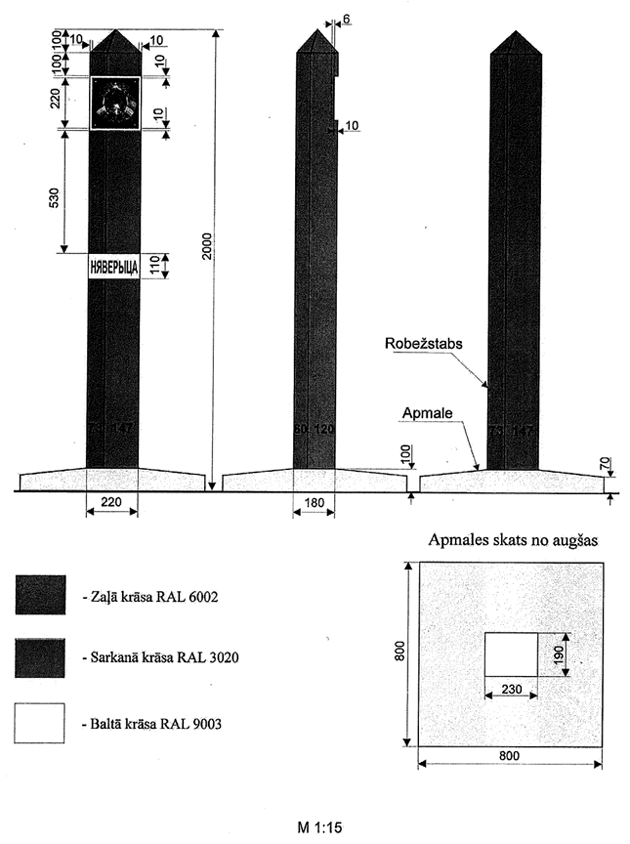 Latvijas Republikas valsts ģerboņa attēls un robežstaba uzraksti