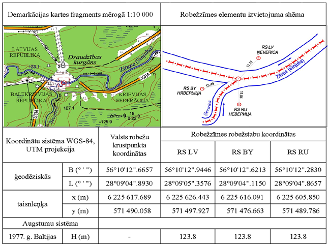 Īstenojot 2010. gada 28. janvāra Latvijas Republikas valdības, Baltkrievijas Republikas valdības un Krievijas Federācijas valdības vienošanos par Latvijas Republikas, Baltkrievijas Republikas un Krievijas Federācijas valsts robežu krustpunkta noteikšanu, Kopīgā Latvijas, Baltkrievijas un Krievijas komisija Latvijas Republikas, Baltkrievijas Republikas un Krievijas Federācijas valsts robežu krustpunkta noteikšanai (turpmāk – robežu krustpunkts) noteica un iezīmēja precīzu robežu krustpunkta atrašanās vietu un uzstādīja speciālo robežzīmi "Ņeverica".