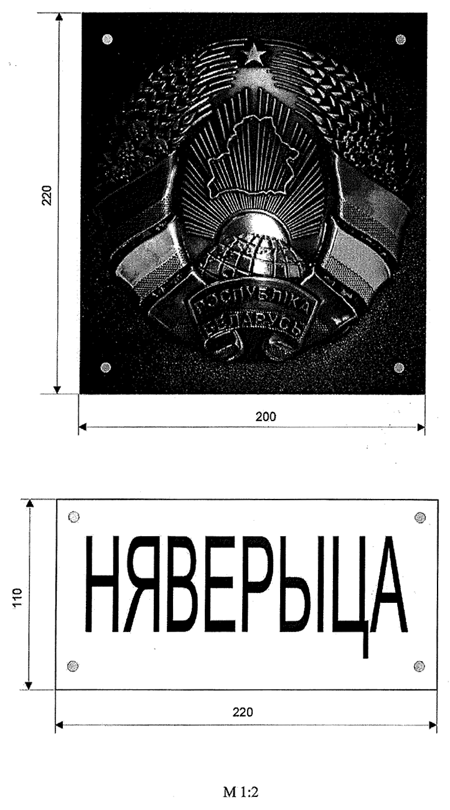 Baltkrievijas Republikas valsts ģerboņa attēls un robežstaba uzraksti