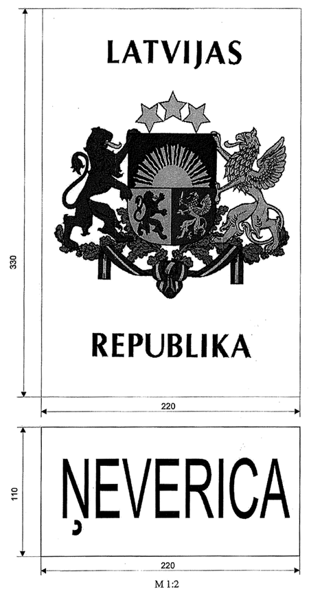 1. Robežu krustpunktā uzstādīto speciālo robežzīmi "Ņeverica" (turpmāk – robežzīme) veido trīs četrplakņu vienāda augstuma robežstabi, katrs no kuriem atrodas Latvijas Republikas, Baltkrievijas Republikas un Krievijas Federācijas teritorijā.