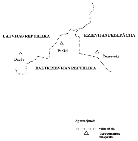 - Baltkrievijas Republikas un Krievijas Federācijas – no robežu krustpunkta pa Ņevericas upes vidu vispārējā dienvidu virzienā;