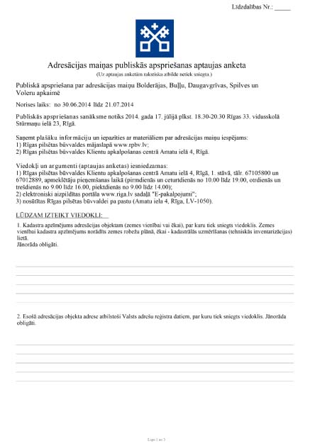 (Amatu iela 4, Rīga, LV-1050). Aptaujas anketas iespējams