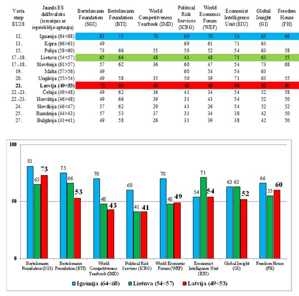 Tautsaimniecības attīstība un ekonomiskās situācijas uzlabošanās vēl arvien vāji ietekmē viena no galvenajiem koruptīvas rīcības cēloņiem – normālai iztikai nepietiekama atlīdzības apmēra, paaugstināšanos atbilstoši dzīves dārdzībai Latvijā. Centrālās statistikas pārvaldes apkopotie dati liecina, ka viena iedzīvotāja pilna iztikas minimuma preču un pakalpojumu groza vērtība 2012.gadā bija aptuveni puse no publiskajā pārvaldē (sabiedriskajā sektorā) strādājošas personas naudas ieņēmumiem, kas faktiski nedod iespēju piesaistīt darbam valsts pārvaldē ierindas speciālistu amatā augsti kvalificētus un motivētus darbiniekus, kam ir ģimene un mājsaimniecība. Izmaiņas tautsaimniecībā rada būtisku ietekmi uz atalgojumu gan privātajā, gan publiskajā sektorā. Laika posmā no 2009. līdz 2010.gadam ieviesto taupības pasākumu rezultātā, būtiski samazinot finansējumu valsts pārvaldes iestādēm, atlaižot no darba aptuveni 20% valsts pārvaldes darbinieku un krasi samazinot ierēdņu un darbinieku atalgojumu, notika process, kas būtiski palielināja korupcijas riskus valstī. 2014.gadā nedaudz ir palielināts atlīdzības apmērs IeM sistēmas iestāžu un Ieslodzījuma vietu pārvaldes amatpersonām ar speciālajām dienesta pakāpēm, taču nozīmīgākas izmaiņas tiek plānotas, sākot ar 2016.gadu. MK atbalstīja IeM izstrādātās koncepcijas par jaunu darba samaksas sistēmu Iekšlietu ministrijas sistēmas iestāžu un Ieslodzījuma vietu pārvaldes amatpersonām ar speciālajām dienesta pakāpēm (apstiprināta ar MK 2013.gada 27.decembra rīkojumu Nr.675) 2.variantu – uz jauniem principiem balstītu darba samaksas sistēmu. Jaunās darba samaksas sistēmas ieviešanai un darba samaksas paaugstināšanai amatpersonām ar speciālajām dienesta pakāpēm no 2016.gada 1.janvāra papildus būs nepieciešams finansējums ne vairāk kā 61 972 913 eiro apmērā, tai skaitā IeM – 52 356 560 eiro un TM – 9 616 353 eiro. Zemākā mēnešalga plānota 588 eiro (413,24 lati) apmērā, bet vidējā atlīdzība varētu būt ap 765 latiem (1088,50 eiro) un palielināties par 211 latiem (300,23 eiro), salīdzinot ar 2013.gadu.21 Korupciju Latvijā veicina un pastiprina iedzīvotāju ienākumu nevienlīdzība, radot tieksmi un motivāciju cilvēkiem ar zemu atalgojumu koruptīvas rīcības rezultātā uzlabot savu finansiālo stāvokli. GINI koeficients, ar ko mēra ienākumu nevienlīdzību sabiedrībā, liecina, ka tas Latvijā ir visaugstākais ES, sasniedzot 35,7 no 100.22 2014.gada Globālās konkurētspējas indeksa (turpmāk – GKI) reitingā Latvija ieņem 42.vietu. No 16 visproblemātiskākajiem faktoriem, kas traucē uzņēmējdarbību, 4.vietu ieņem korupcija.23 GKI dati ļauj noteikt valsts konkurētspējas priekšrocības un trūkumus atsevišķo konkurētspēju noteicošo faktoru griezumā. Augstas konkurētspējas valstīs esošie uzņēmumi bieži vien spēj vieglāk iekarot mazāk konkurētspējīgu valstu tirgus un izkonkurēt to vietējos uzņēmumus, neredzot nepieciešamību uzņēmējdarbībā izmantot negodīgu un pretlikumīgu rīcību, tajā pašā laikā mazāk konkurētspējīgu valstu uzņēmumi vietējā un eksporta tirgū savu pakalpojumu vai produktu noieta veicināšanai ir spiesti pielietot negodīgas un pretlikumīgas konkurences metodes, tai skaitā korupciju. Latvijas ekonomikai atgūstoties no ekonomiskās krīzes, palielinās Latvijas tautsaimniecības izaugsmes perspektīvas un pieaug Latvijas eksporta apjomi. Aizvien vairāk uzņēmumu eksportē savu preci, tādējādi meklējot vai paplašinot savas produkcijas noieta tirgu. Eksports šobrīd ir noteicošais Latvijas ekonomikas attīstības dzinējspēks.24 Taču, pieaugot šādām pozitīvām tendencēm, ir jāraugās, lai uzņēmumi kā līdzekli tirgus iekarošanai vai pelņas gūšanai neizmantotu kukuļdošanu. Lai sekmētu Latvijas uzņēmumu konkurētspēju eksportējošās nozarēs un nodrošinātu ekonomikas izaugsmi ilgtermiņā, viens no galvenajiem uzdevumiem un vienlaikus izaicinājumiem ir novērst starptautisko kukuļošanu biznesa darījumos. Pēdējās Latvijas tiesībsargājošo iestāžu izmeklētās lietas liecina, ka šādu starptautiskās kukuļošanas lietu izmeklēšana ir ļoti laikietilpīga, jo kukuļošana notiek ar starpniekuzņēmumu palīdzību un sarežģītām naudas atmazgāšanas shēmām, izmantojot Latvijā un daudzās ārvalstīs reģistrētus uzņēmumus un veicot darījumus ar nekustamajiem īpašumiem un ieguldījumus tām piederošajos uzņēmumos. Korupcijas izplatību būtiski ietekmē arī Latvijā pastāvošā ēnu ekonomika, radot iespēju ar nelegālā ceļā iegūtu naudu veikt koruptīvus noziedzīgus nodarījumus. Ekonomiskās krīzes rezultātā cilvēku vilinājums darboties ēnu ekonomikā pieauga. Pieaugot ēnu ekonomikai un nelegālās naudas apritei, mazinās valsts budžeta ieņēmumi un valstij ir grūtāk stabilizēt ekonomiku, kā rezultātā arī turpmāk cīņai pret ēnu ekonomiku valstī ir jābūt vienam no galvenajiem valdības uzdevumiem, efektīvi īstenojot ēnu ekonomikas apkarošanas plānu un veicinot godīgu konkurenci. Korupcijas un ēnu ekonomikas formas un izpausmes veidi kļūst komplicētāki un grūtāk identificējami un to noteikšanai ir nepieciešamas specifiskas zināšanas, cieša sadarbība pieredzes apmaiņā ar ārvalstu institūcijām, kā rezultātā ir nepieciešams investēt kontrolējošo institūciju25 nodarbināto profesionālās pilnveides pasākumos, veicinot stratēģisko un operatīvo analīzes metožu efektivitātes uzlabošanu, kas nodrošinātu efektīvāku korupcijas un ēnu ekonomikas novēršanu un normatīvā regulējuma turpmāku pilnveidi. Saskaņā ar Centrālās statistikas pārvaldes datiem Latvijas IKP 2013.gadā, salīdzinot ar 2012.gadu, palielinājies par 4,1%, turpinot uzrādīt straujāko kāpumu starp ES valstīm. Vi