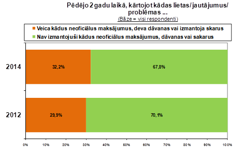 10.attēls. Koruptīvu paņēmienu izmantošanas biežums dažādu pakalpojumu saņemšanā.