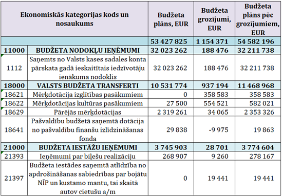 Budžeta ieņēmumu plānā izmaiņas veiktas pamatojoties uz