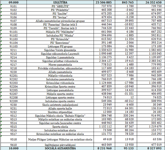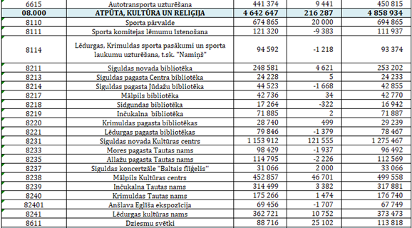 struktūrvienības uz Siguldas sporta skolu (6333 euro) un
