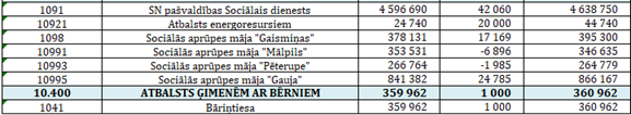 - 30 000 euro Sociālā dienesta SAM pabalstiem;