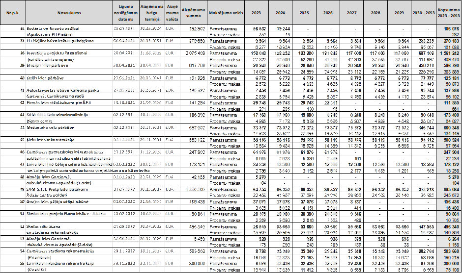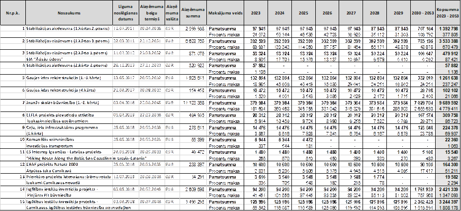 aizņēmumu apjomu 2023. gadā 2'647'215 euro apmērā,