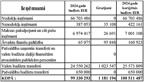 pašvaldības 2024. gada budžeta grozījumos šie ieņēmumi palielinās