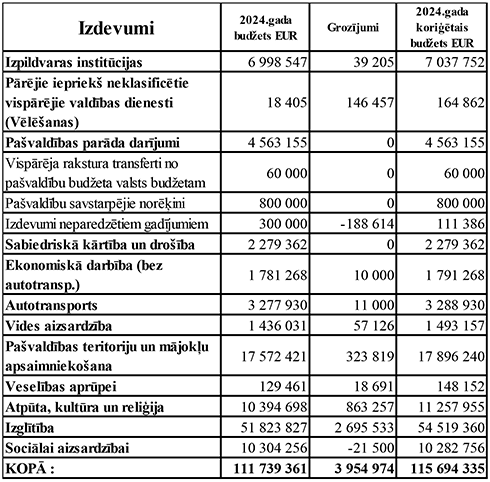 budžeta grozījumos apkopoti šādi priekšlikumi pašvaldības budžeta